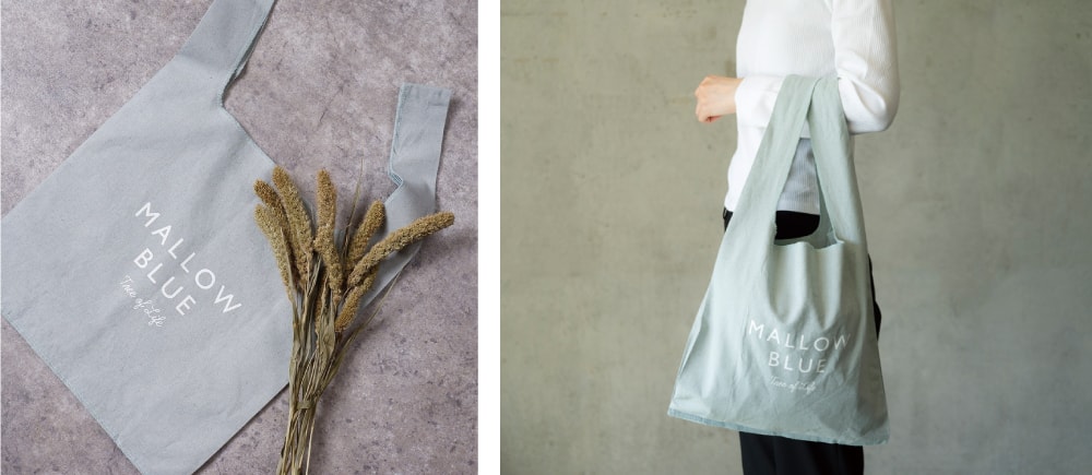 さらに、お客さまとも自然を大切にする想いを共有できたらと、スタッフのユニフォームと同じ生地で「エコバッグ」を作り、発売します。