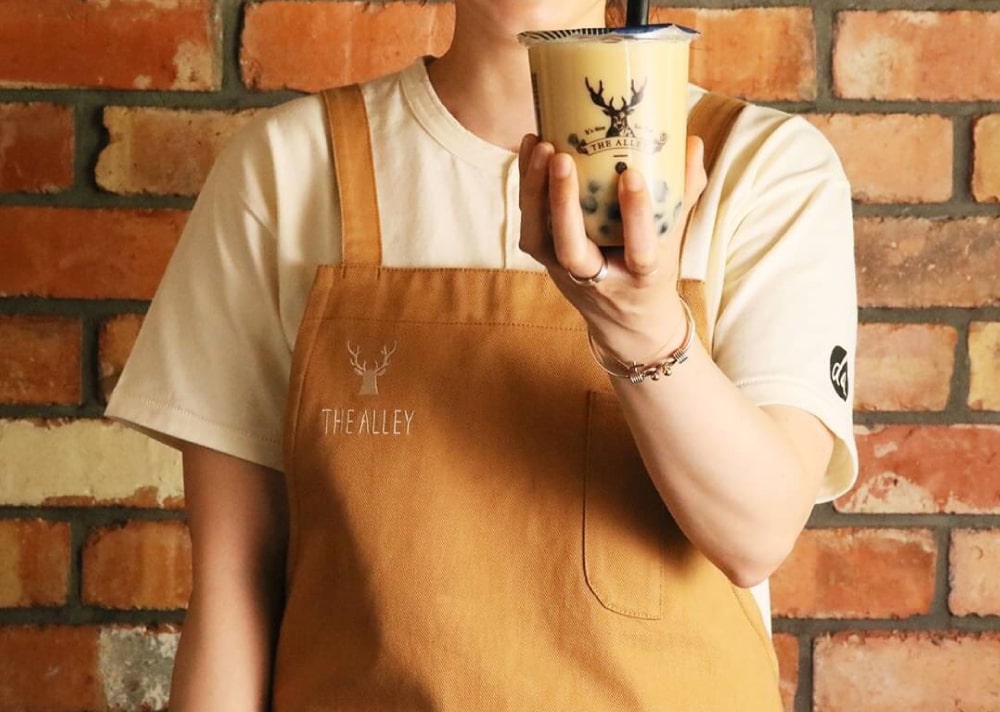 茶師が特別にブレンドした⼈気の茶葉”ロイヤルNO.9”の出涸らしを使い、やさしいブラウン系のアースカラーに染まった⽣地でTHE ALLEYだけのエプロンとカットソーが仕上がりました。