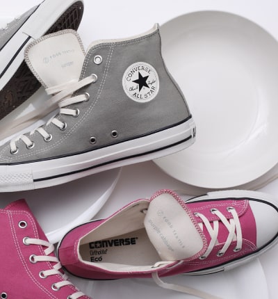 環境に配慮したエコ素材を実験的に使用し紹介する、「converse e.c.lab(コンバースイーシーラボ)」にてFOOD TEXTILEの生地をアッパーに採用していただきました。