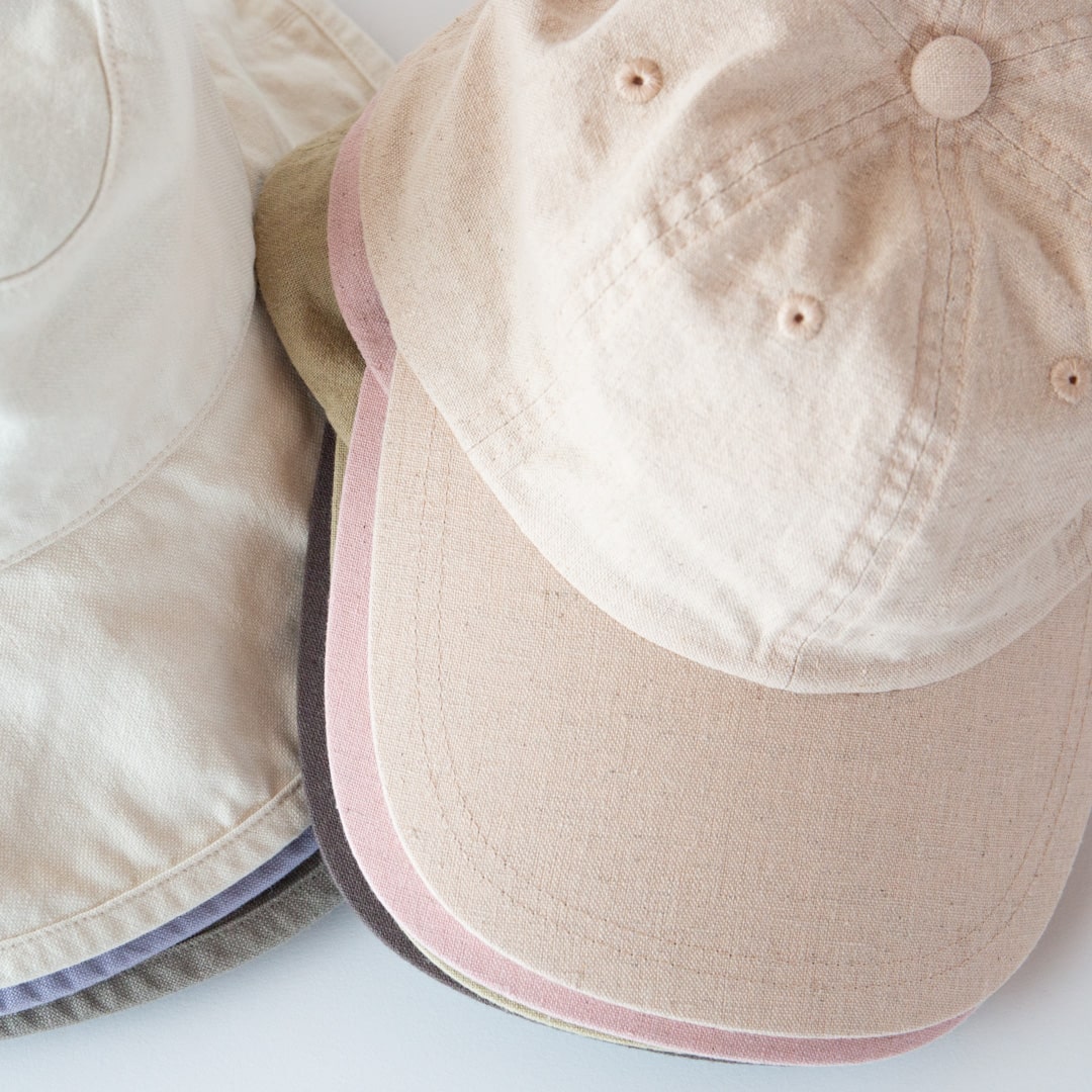 今回はFOOD TEXTILEのオーガニックコットンキャンバスのソフトハットと、オーガニックコットンリネンキャンバスを使用したスタンダードな6パネルキャップを発売。