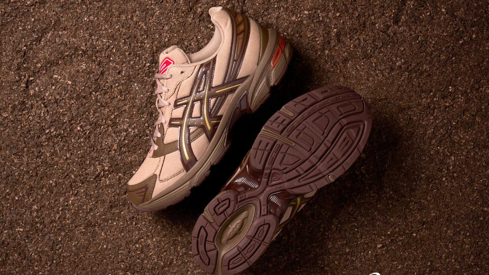 FOOD TEXTILEでカカオハスクを染料化して染め上げた生地はアッパー素材の一部に採用されています。